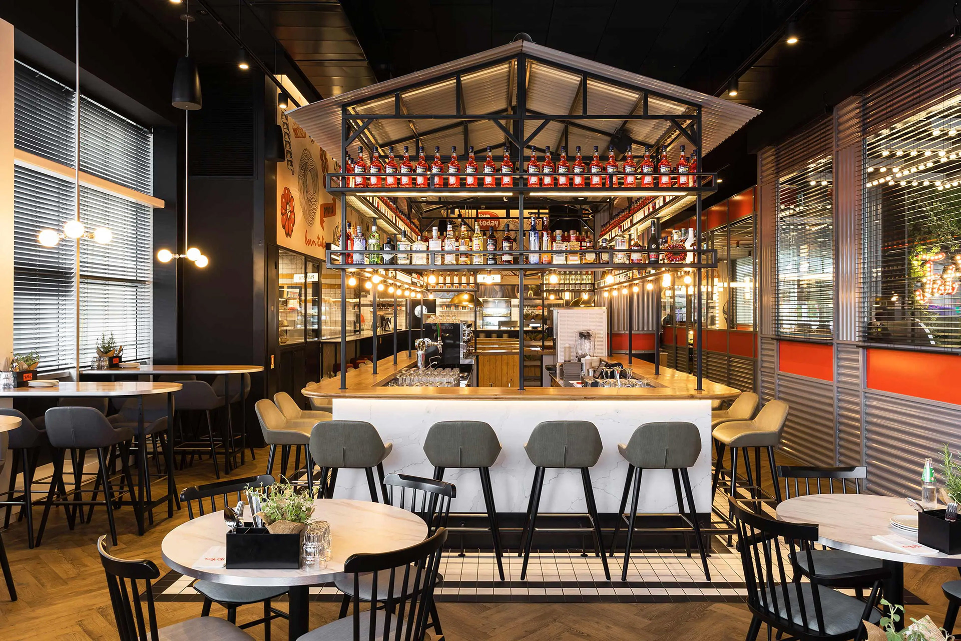A restaurant I co-designed and co-planned during my work at InsideOut Studio. An interior design studio specializing in commercial spaces